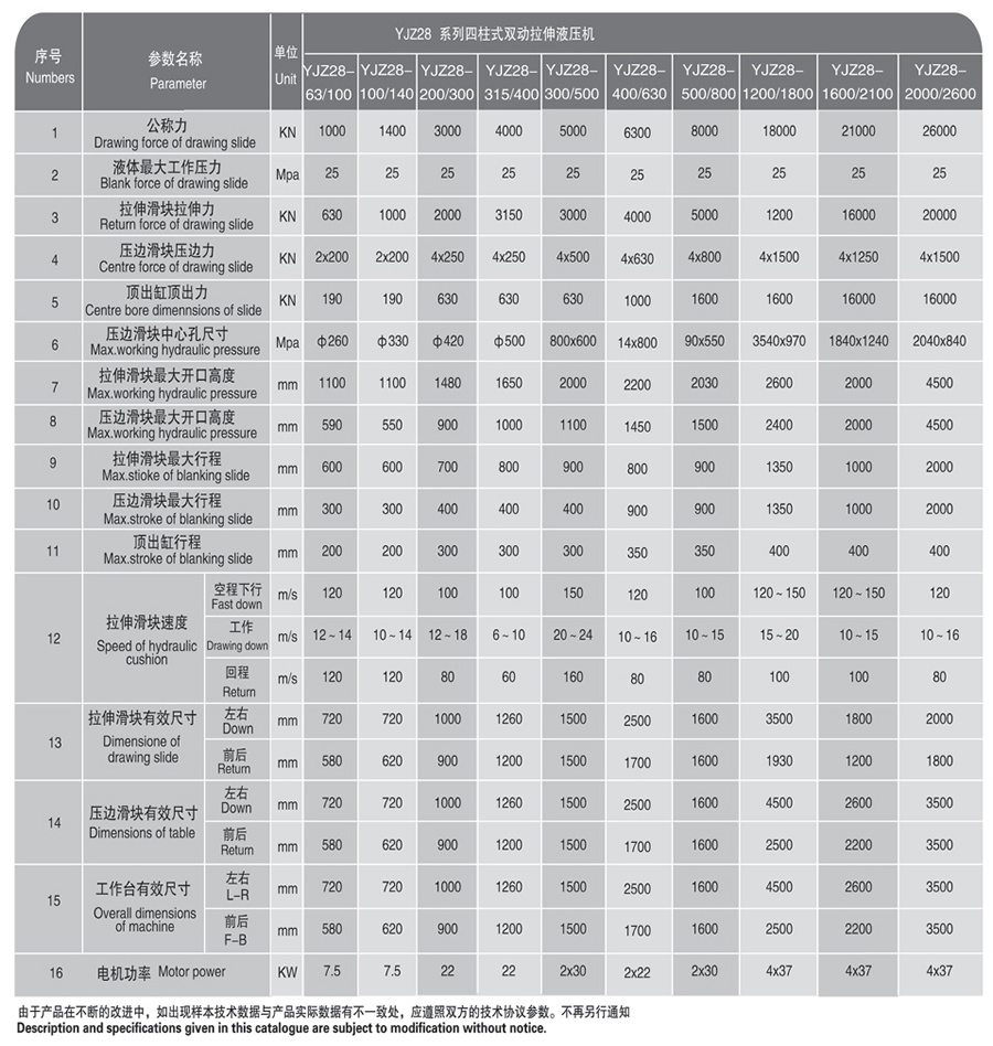 YJZ28-系列四柱式、框架式雙動薄板拉伸液壓機